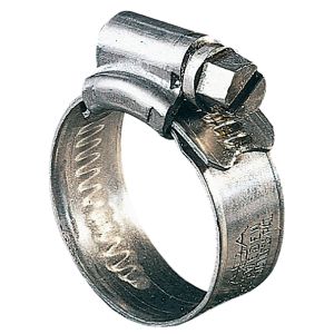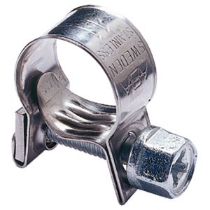 Interamente in acciaio inox SS 2333/AISI 304. Nastro da 9 mm con bordi rialzati. Vite esagonale da 7 mm con intaglio. Indicata per usi industriali, agricoli, chimici e nautica. Per tubi di piccoli diametri e tubi benzina. Confezione in sacchetto nylon.