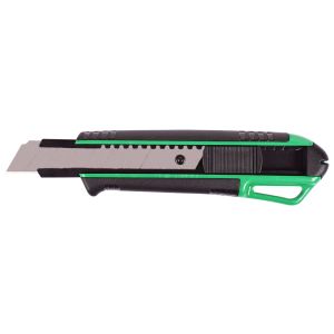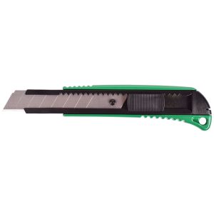 In ABS con meccanismo di sicurezza autobloccante. Terminale in metallo per lame a segmento affilate. Testa con intaglio spezza lama. Lama a spezzare da 25 mm con spessore da 0,7 mm. Ricambio art. 1723. Adatto per il taglio di cartone, nastri adesivi, carta, plastica, schiuma, tessili. In blister appendibile.
