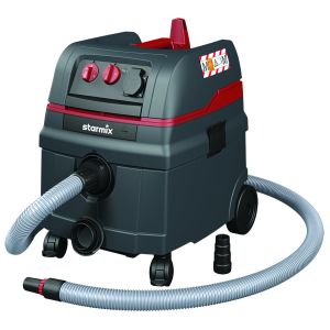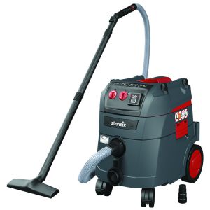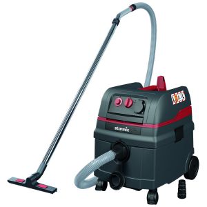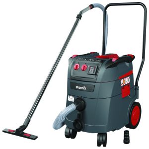 Aspirapolvere/aspiraliquidi con pulizia automatica dei filtri ad impulsi elettromagnetici durante le pause di lavoro. Completo di accessori EW (tubo flessibile 5 mt e raccordo in gomma).