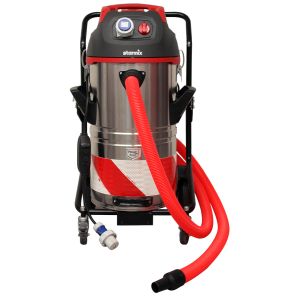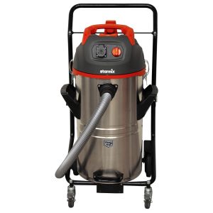 Contenitore: lordo 78 Lt, polvere 57 Lt, acqua 50 Lt. Dimensioni: 61x63 cm h. 97 cm. Aspirapolvere/aspiraliquidi per la pulizia di grandi aree e macchinari industriali. Completo di accessori PZ. Spazzola di grandi dimensioni da 45 cm. Contenitore in acciaio. 3 motori azionabili singolarmente e grande potenza di aspirazione.