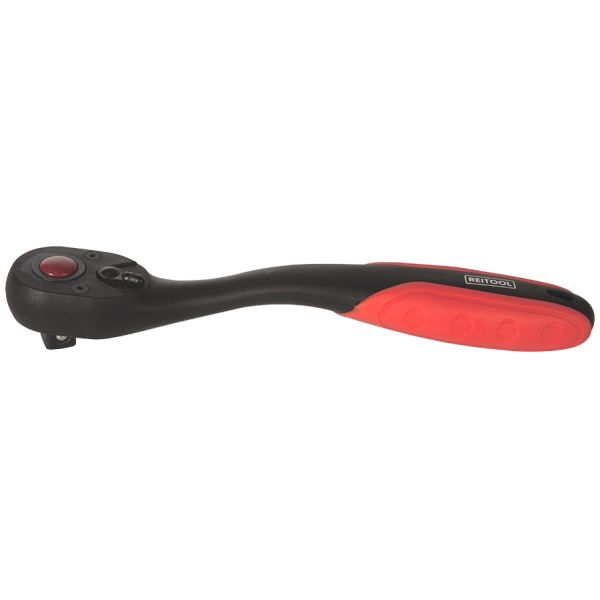 Con pulsante per sgancio veloce e inversione con levetta. In cromo vanadio con finitura nera. Impugnatura ergonomica in materiale antiscivolo.
