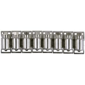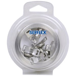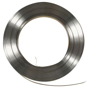 Nastro perforato. Carrello e vite in acciaio inox W4 18-09. Larghezza nastro 5 mm - Spessore 0,4 mm. Coppia di serraggio 0,8 Nm. In scatola di plastica.