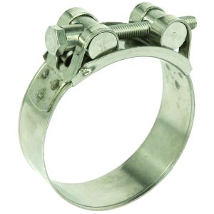 Banda e bullone in acciao inox AISI 304. Collare con bordo rialzato e supporto elettrosaldato a tre punti. Per serraggi molto elevati nel settore industriale.