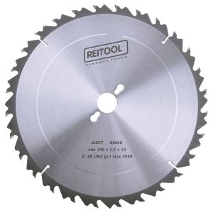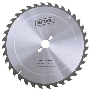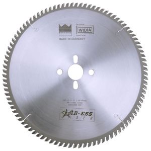 Per legno multistrato e rivestito nei due lati, parchetti, vernici e vetroresine. Per troncatrici portatili. Denti con affilatura positiva alternata sx-dx.