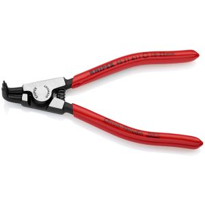 Pinza di precisione per anelli di sicurezza esterni su alberi. Con molla di apertura inserita. Finitura bonderizzata nera, testa pulita - In acciaio cromo vanadio forgiato e temprato ad olio. Punte piegate a 90° in acciaio temprato ed estruso per molle. Manici rivestiti in resina sintetica antiscivolo - DIN 5254 B.
