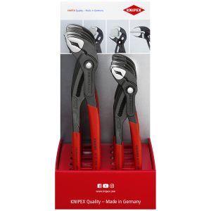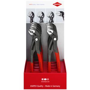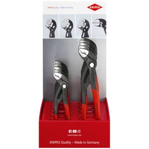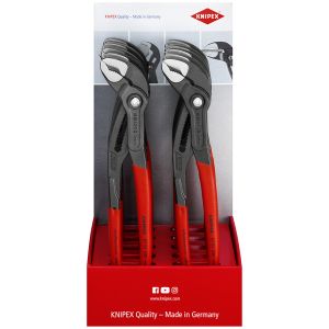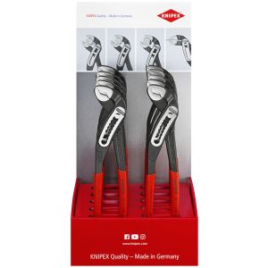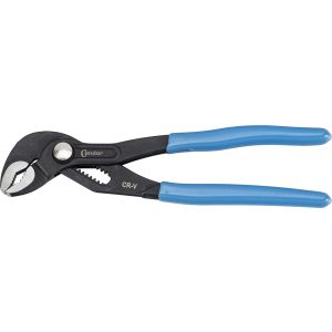 Manici rivestiti in resina sintetica antiscivolo - Esecuzione bonderizzata nera - In acciaio cromo vanadio, forgiato temperato ad olio. Con fermo di contrasto per evitare lo schiacciamento accidentale. Regolazione a scatto su 9 posizioni per una elevata capacità di carico. Cerniera passante: doppia guida per un'elevata stabilità. Buona accessibilità al pezzo grazie alla forma affusolata della testa. Autoserrante per tubi e dadi. Superfici delle ganasce con denti trattati con speciale tempera, durezza dei denti ca. 61 HRC.