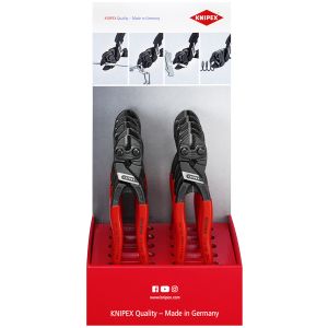 Manici rivestiti in resina sintetica antiscivolo. In acciaio cromo vanadio, forgiato temperato ad olio. Con taglienti rettificati per taglio raso. Per un taglio raso di bavature di resina sintetica. Trancia di netto i materiali dolci come il piombo. Migliore rapporto di trasmissione per 25 % di capacità di taglio in più.