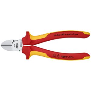 Manici rivestiti in materiale bicomponente. Isolati VDE. Esecuzione bonderizzata nera. In acciaio cromo vanadio, forgiato temperato ad olio. Taglienti di precisione per filo metallico a bassa e alta resistenza, temperati ad induzione, durezza ca. 62 HRC. Con testa stretta per l'impiego in luoghi di difficile accesso. Taglio pulito sulle punte dei taglienti.