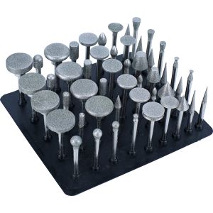 Con gambo da 3 mm. Per smerigliatrici elettriche. Rivestimento al diamante per uso su vetro, ceramica, acciaio, acciaio inox. Assortimento con forme cilindriche, coniche, sferiche, rotonde.